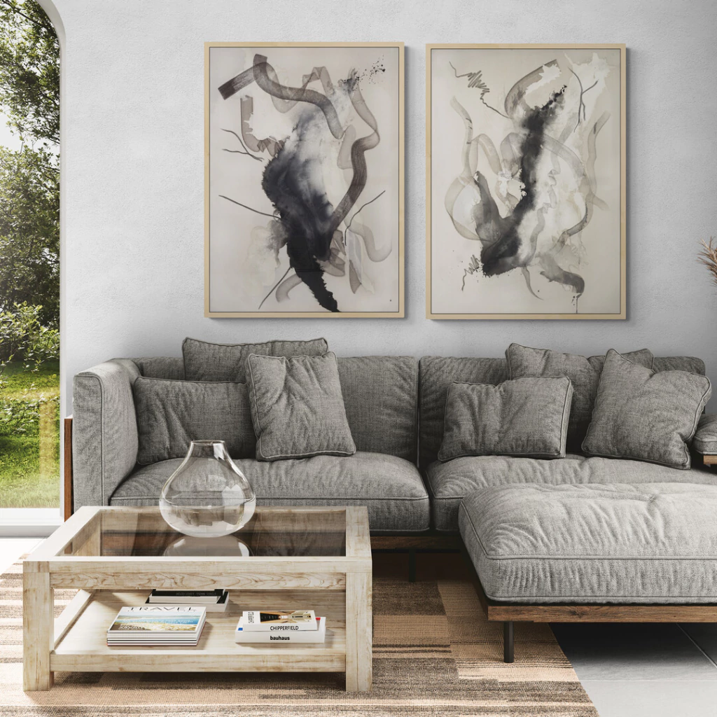 En esta elegante composición, "Atmoshpere 1" y "Atmosphere 2" de Sofía Rametta dialogan en armonía con el espacio, aportando una energía etérea y sofisticada. Con una paleta sutil y movimientos gestuales cargados de expresividad, la artista traslada su mirada arquitectónica hacia lo abstracto, donde las formas fluyen como paisajes emocionales. Estas piezas invitan a contemplar el equilibrio entre estructura y espontaneidad, convirtiéndose en el punto focal perfecto para un ambiente contemporáneo y sereno.