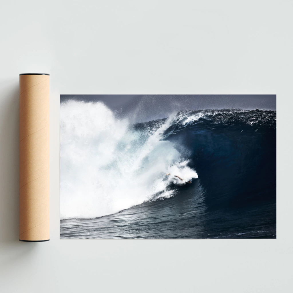 Surfista de cae en una de las olas mas gruesas del mundo. Teahupoo, Polinesia francesa
