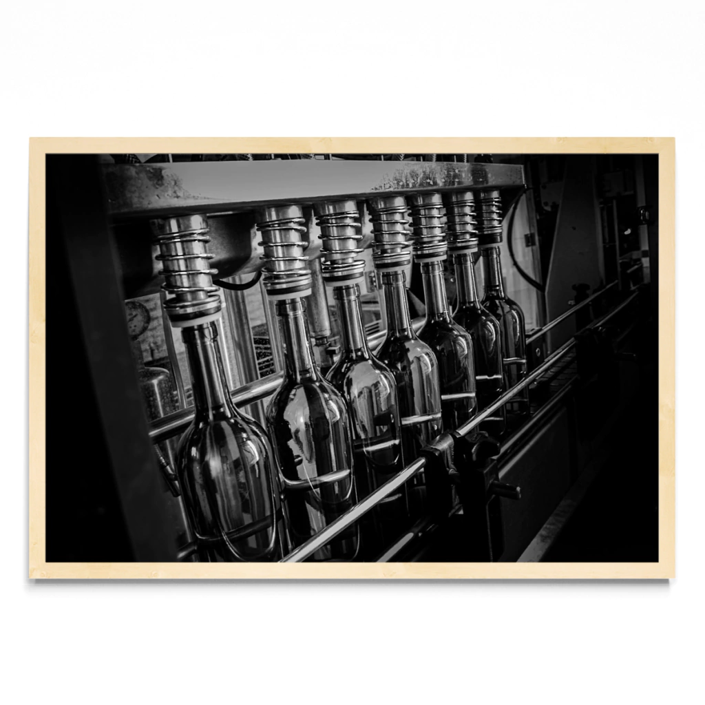 Linea de llenado de botella de vino.