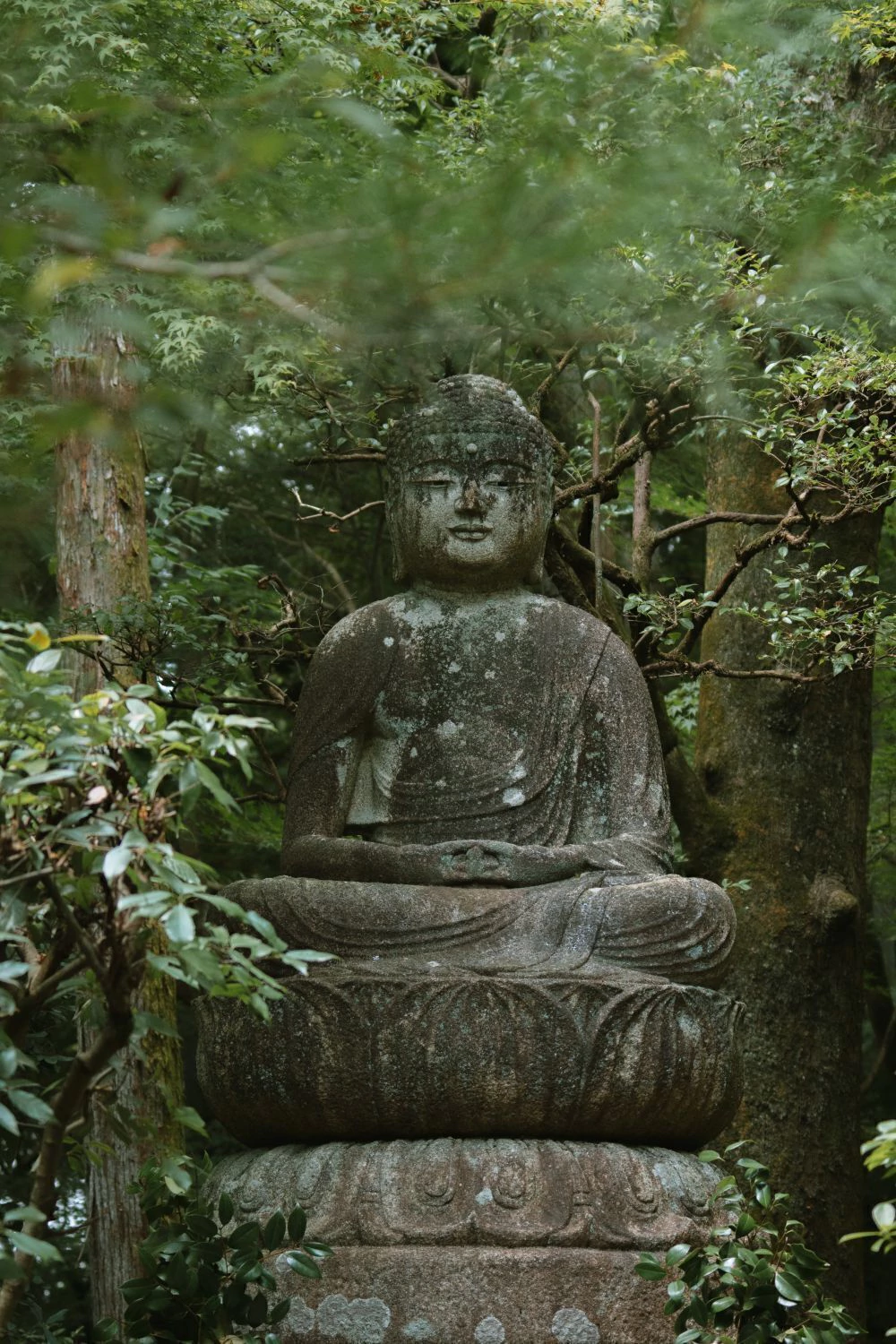 Un buda en medio del jardín del templo Ryoan-Ji, Kyoto.