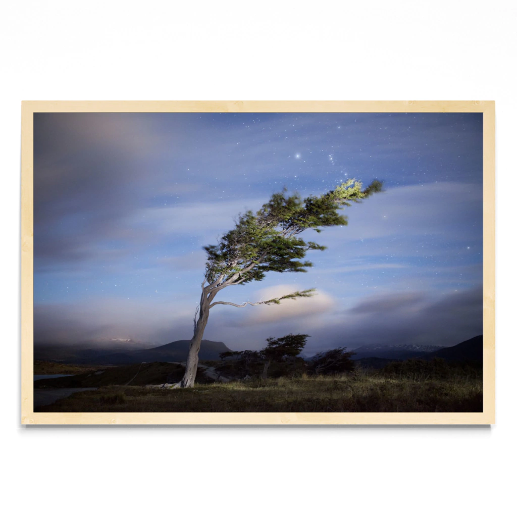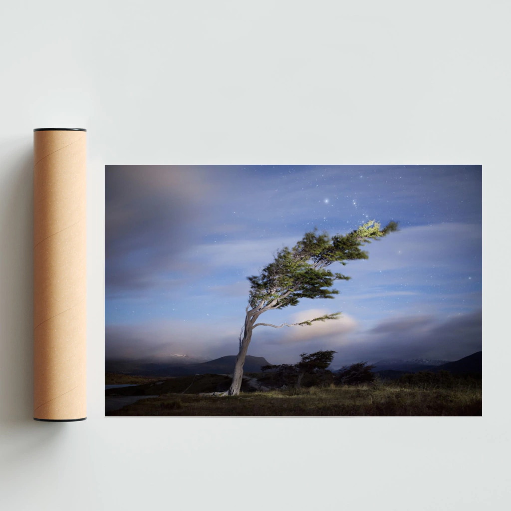 Arbol bandera en Ushuaia, estancia warton. Fotografia nocturna mas suave iluminación con linterna. F2.8 - 30" iso3200