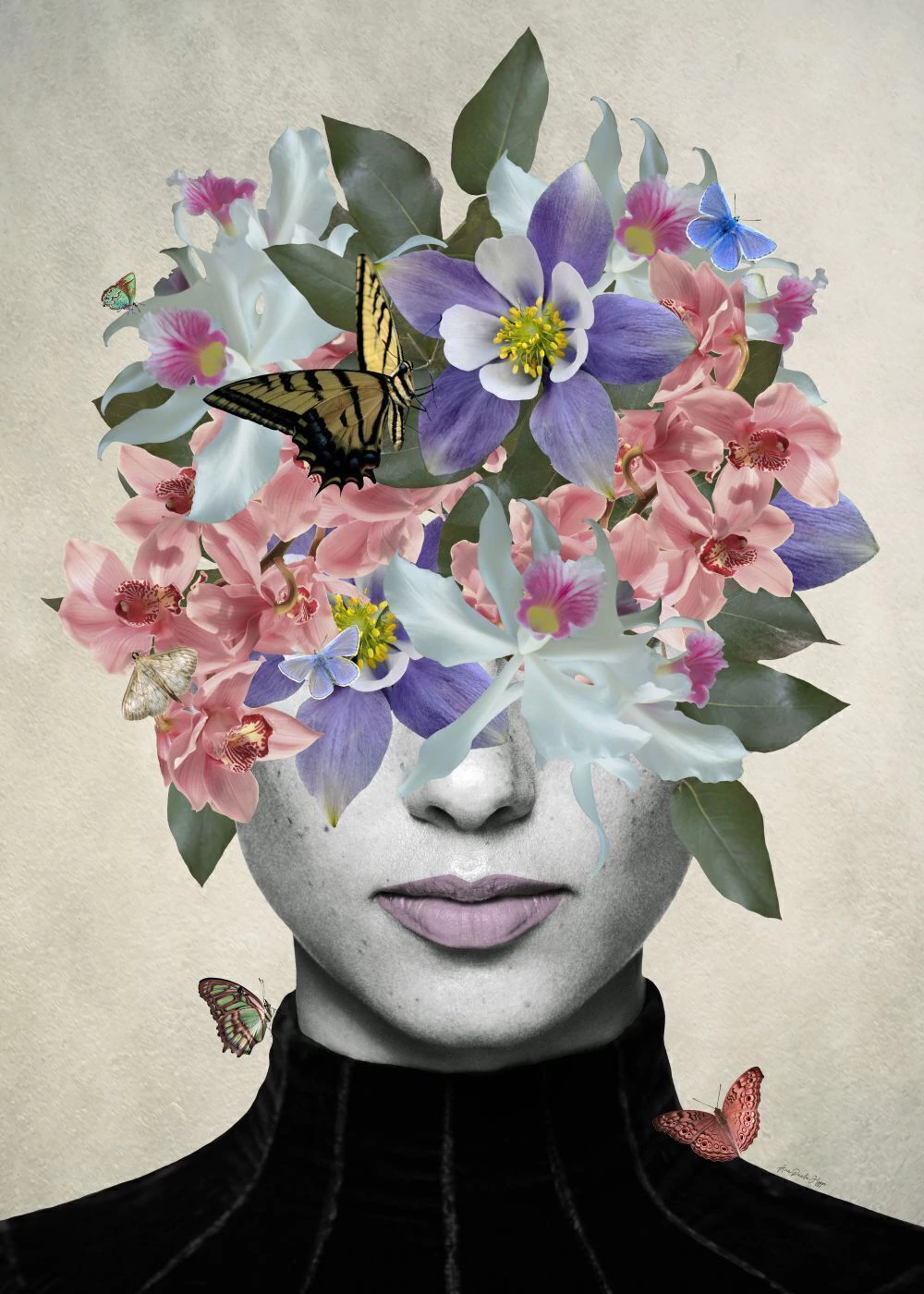 Ana Paula Hoppe creates digital collages featuring women merging with botanical elements. Inspired by the strength of women and the beauty of flowers, her work can help you add feminine and floral vibes to your space.