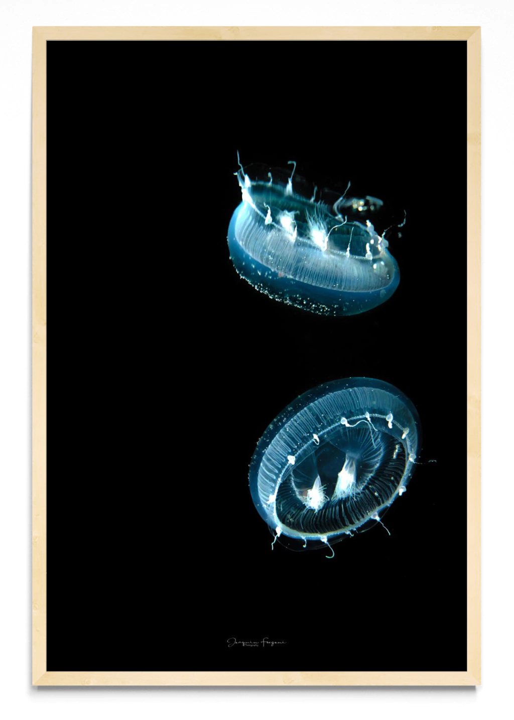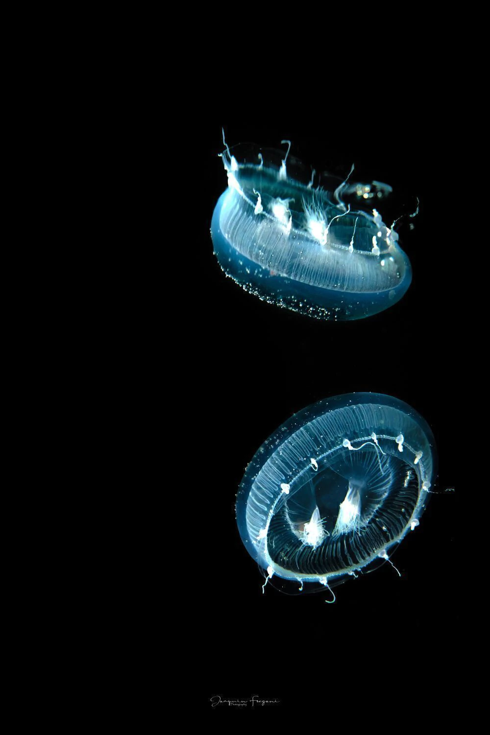 Foto nocturna de una medusa y su reflejo en la superficie.Temae, 2020