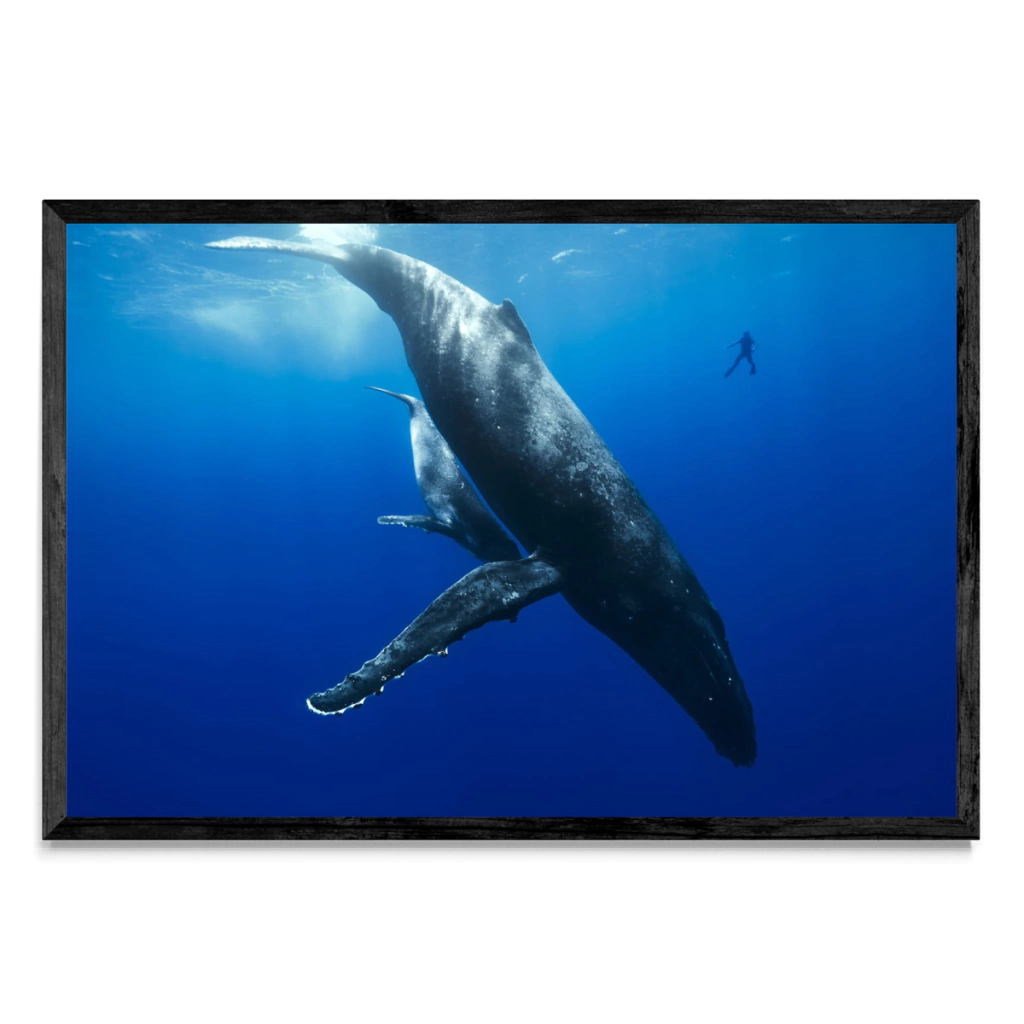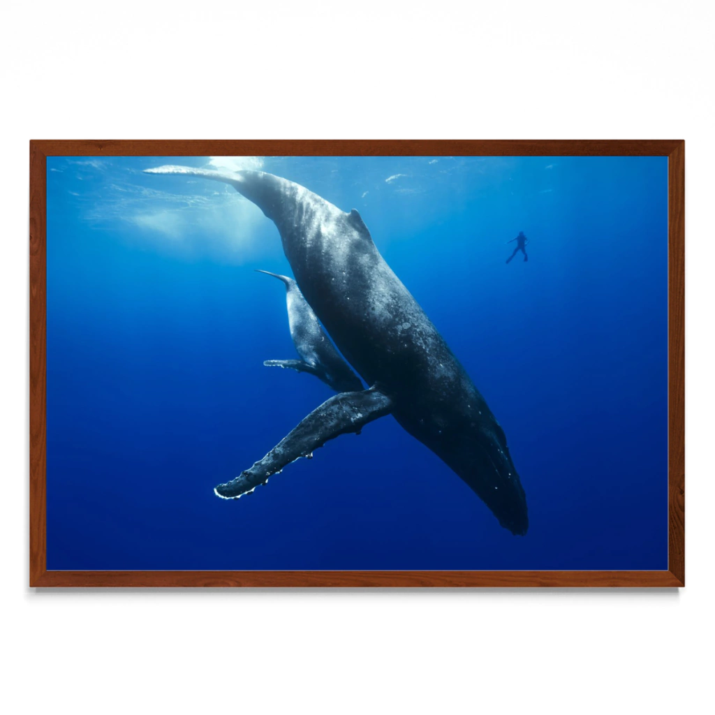 Mi amigo y compañero de trabajo "Amo" al lado de una ballena jorobada y su bebe.