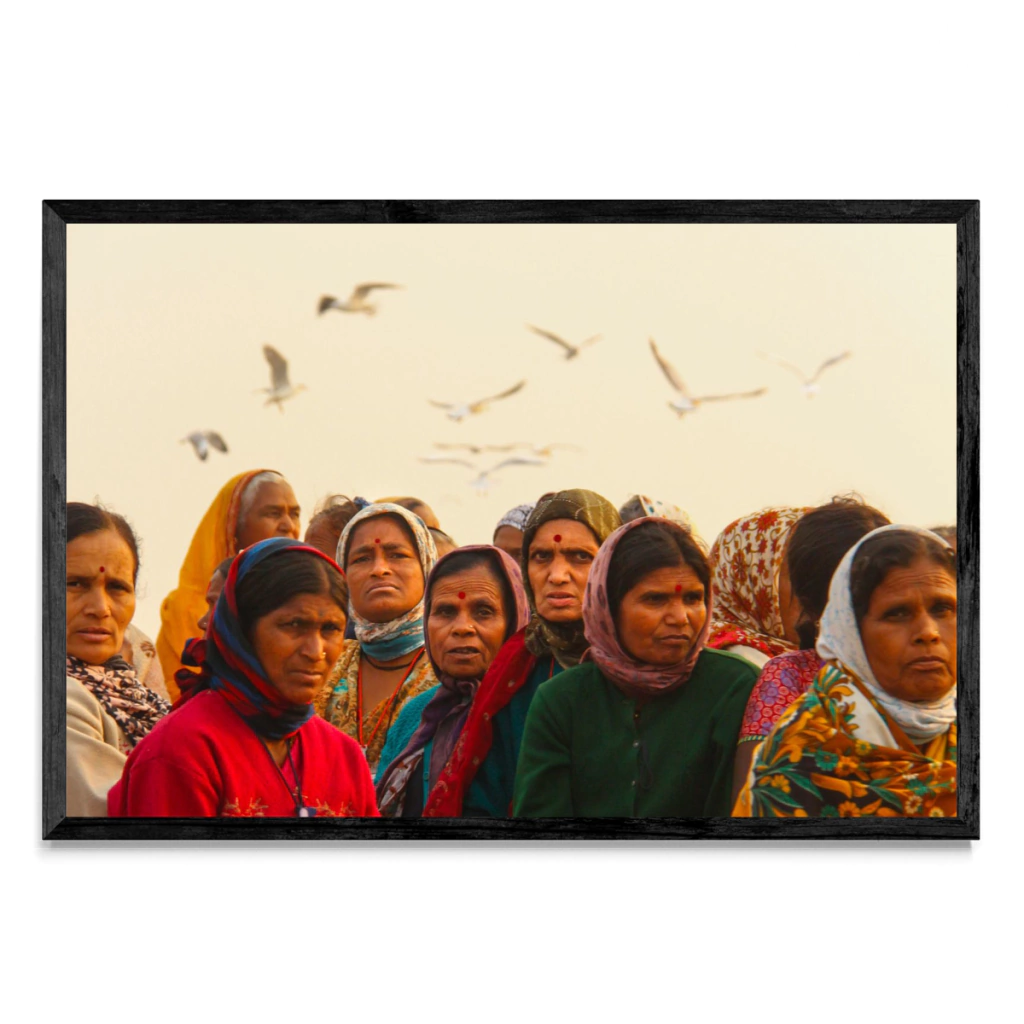 Mujeres navegando en el río Ganges en Varanasi, India.