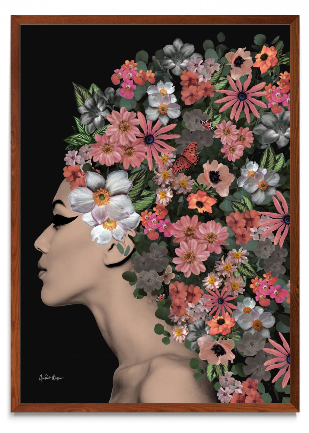 Ana Paula Hoppe creates digital collages featuring women merging with botanical elements. Inspired by the strength of women and the beauty of flowers, her work can help you add feminine and floral vibes to your space.