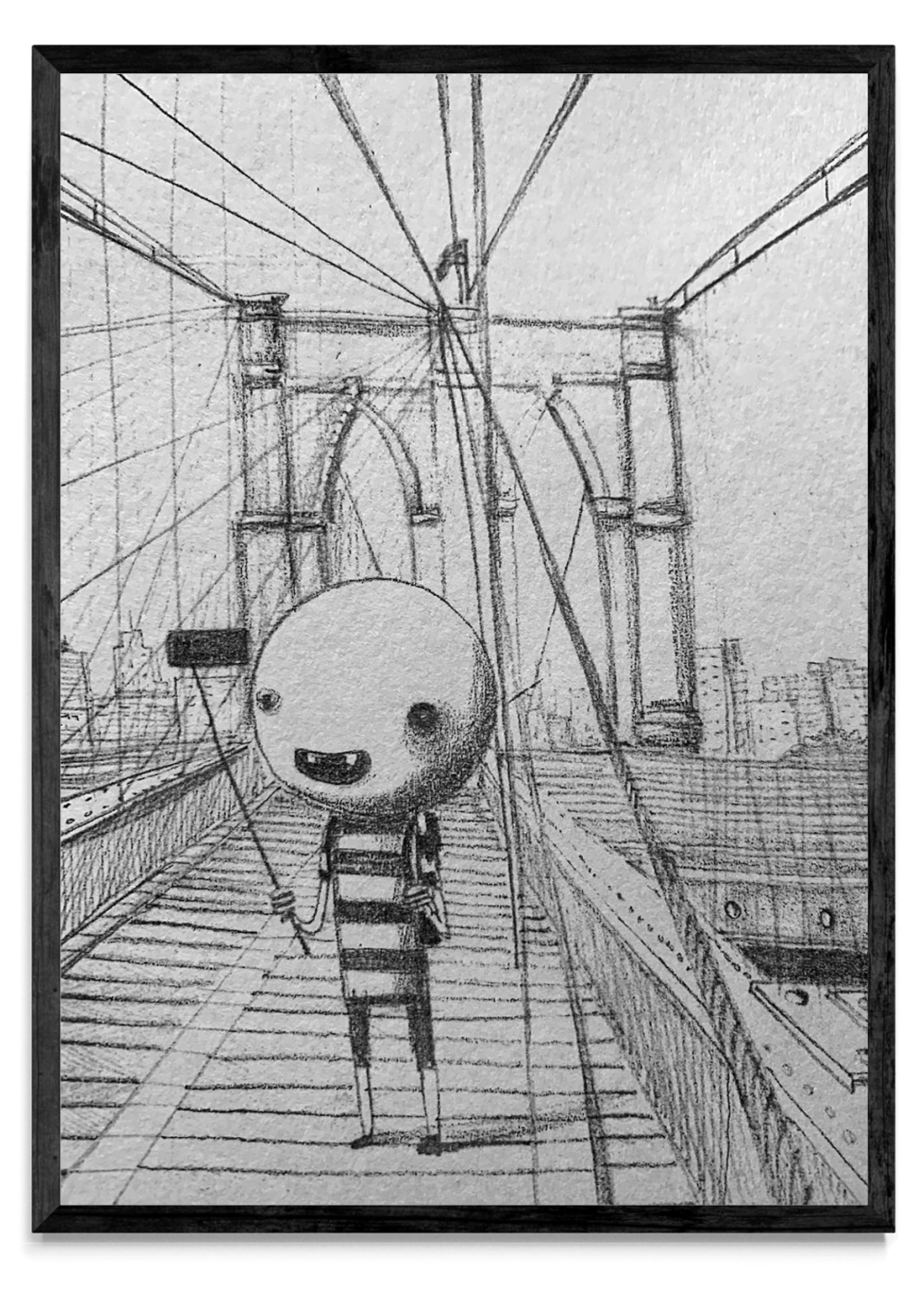 La Neurona creativa sale de viaje y se hace una selfie. Realizado en lápiz sobre papel.
