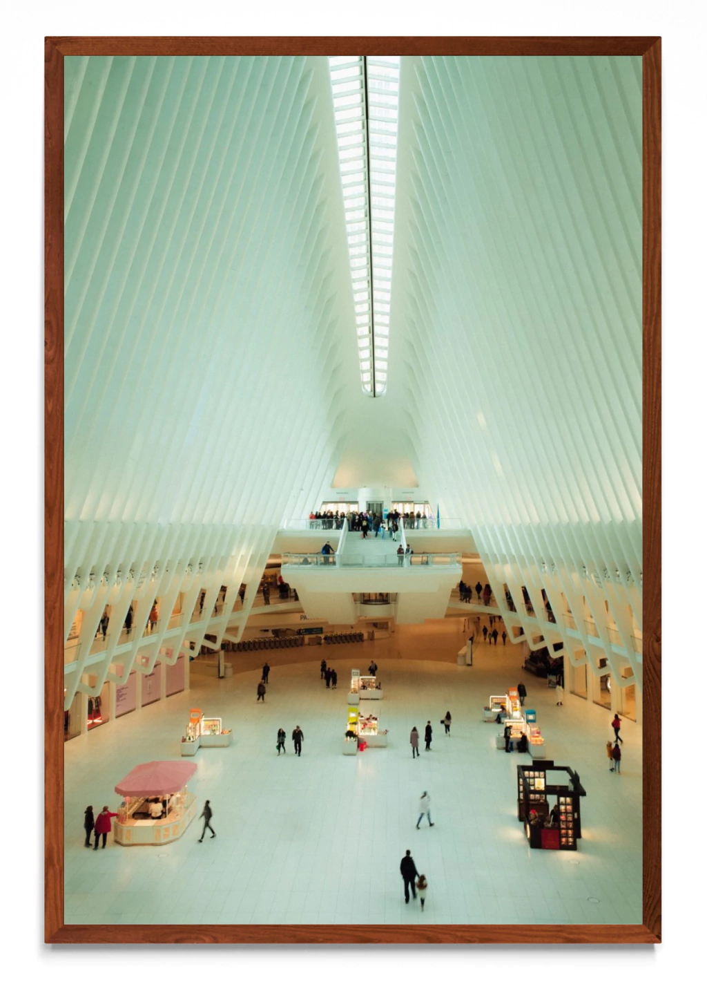 El Oculus, diseñado por Santiago Calatrava, es la estación de transporte de World Trade Center en Nueva York. Su arquitectura futurista, con formas aladas y espacios luminosos, simboliza esperanza y renacimiento, convirtiéndose en un ícono urbano y punto de encuentro de la ciudad.