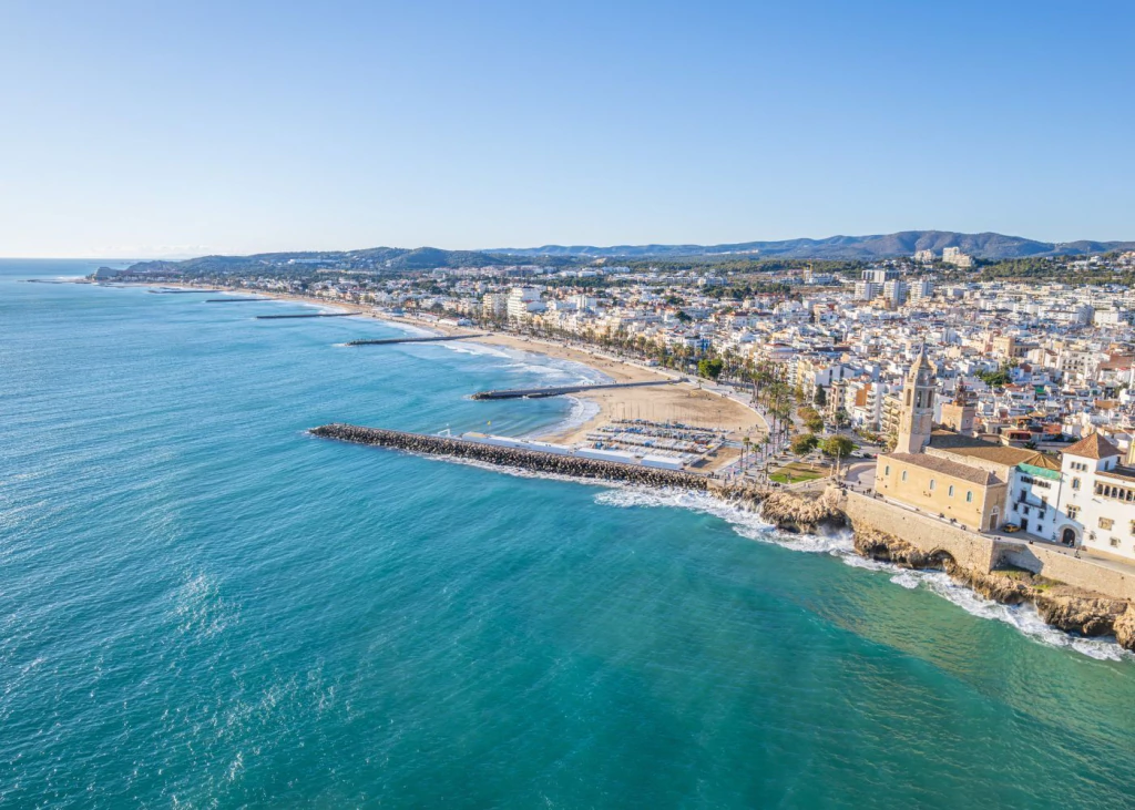 "Fotografía aérea capturada en Sitges, España. Esta encantadora ciudad, con una historia fascinante, es definitivamente uno de los destinos que merece la pena visitar. Situada a poca distancia de Barcelona, ofrece una escapada pintoresca y única."